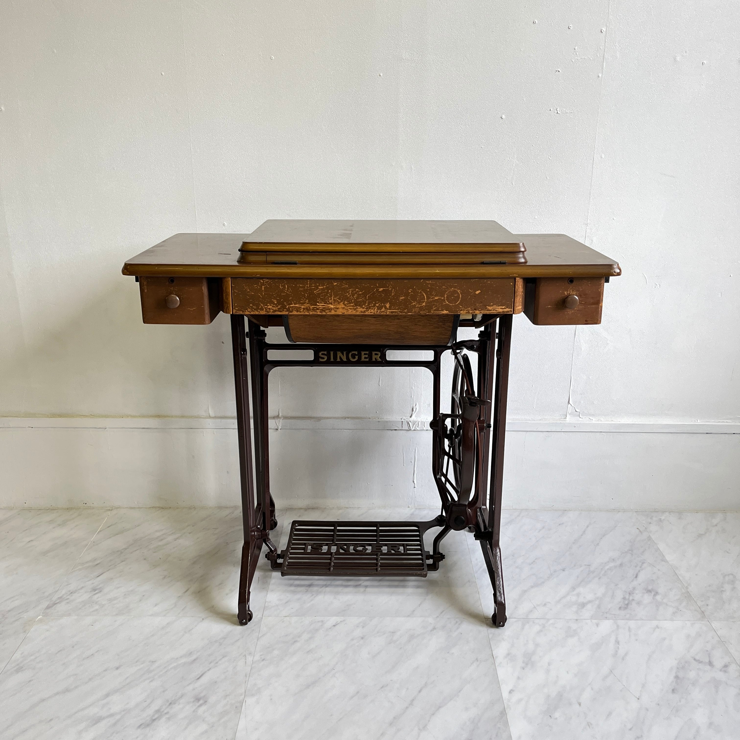 レトロなSINGERの足踏みミシンです。昭和レトロな雰囲気つくりには最適です。