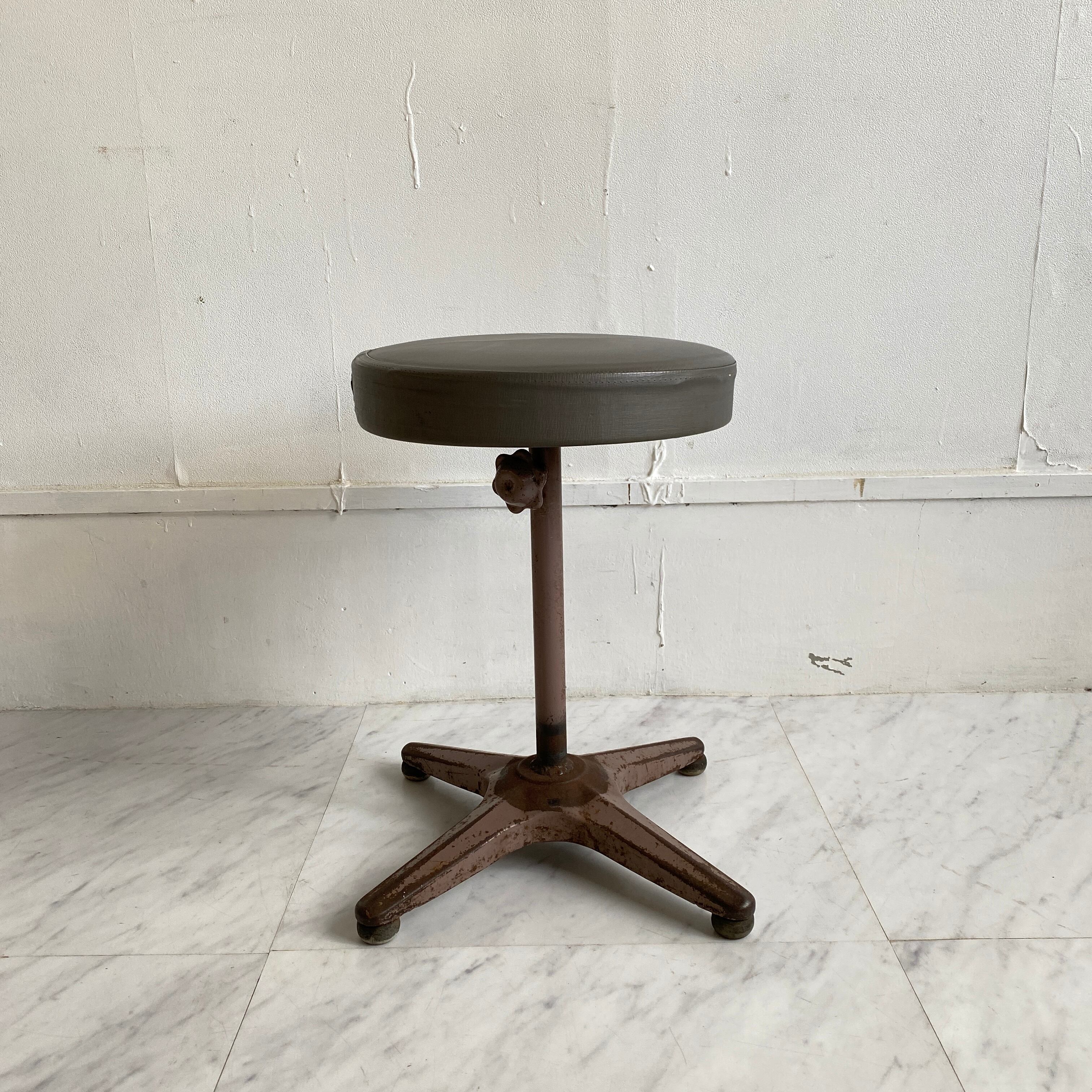 昭和レトロな雰囲気つくりにお勧めな、古いスチールの回転スツールです。