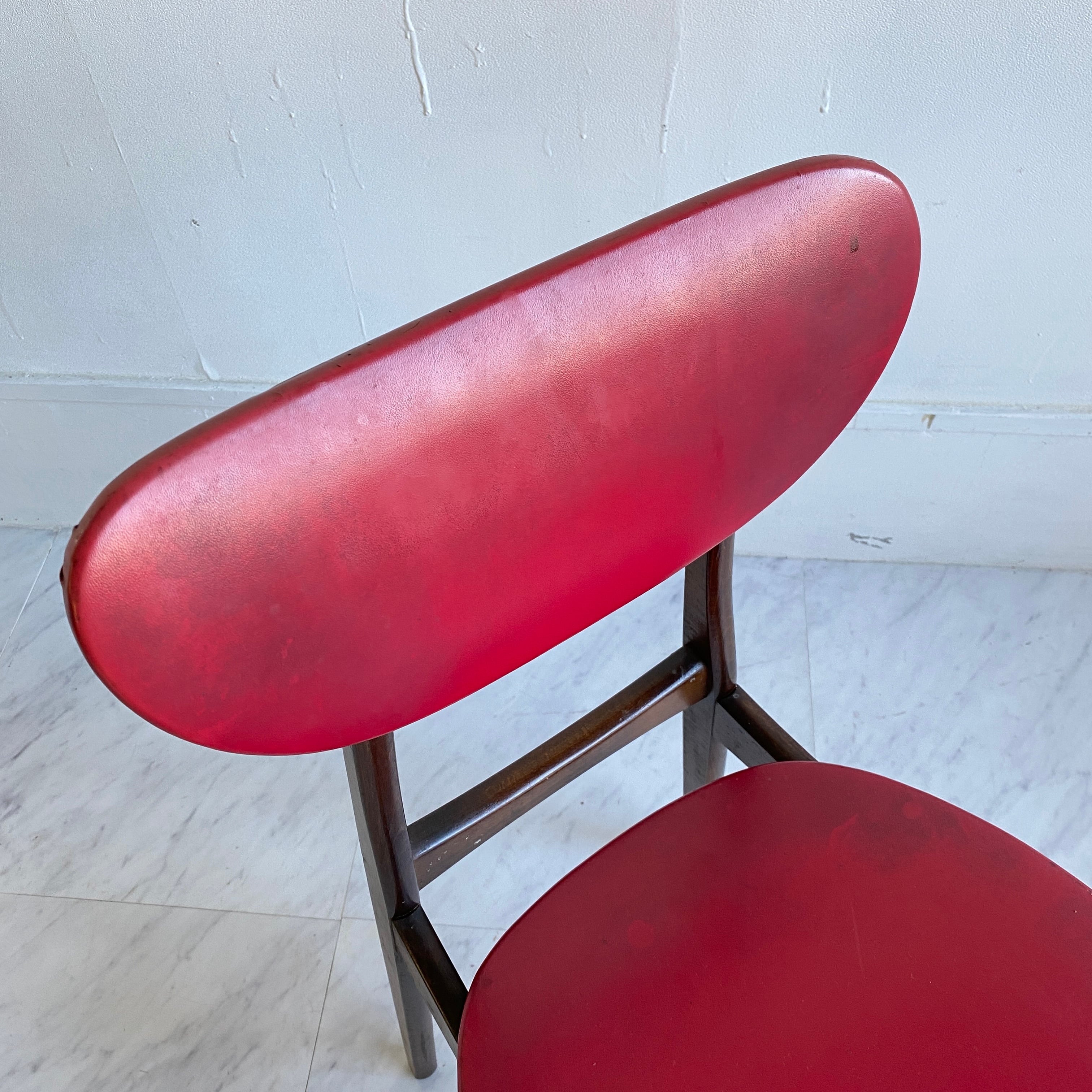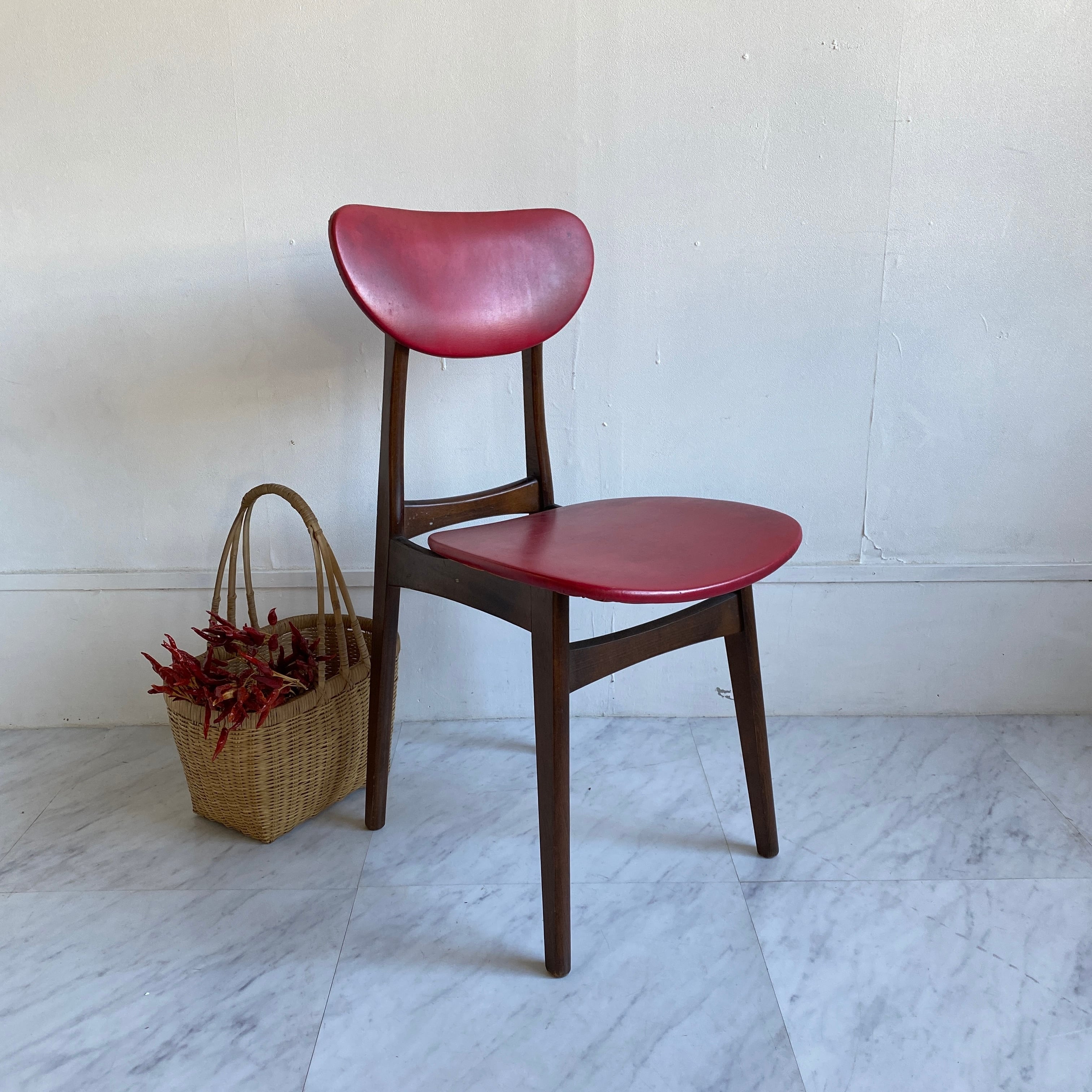 昔懐かしい赤いビニールレザーの木製椅子、ダイニングチェアです。