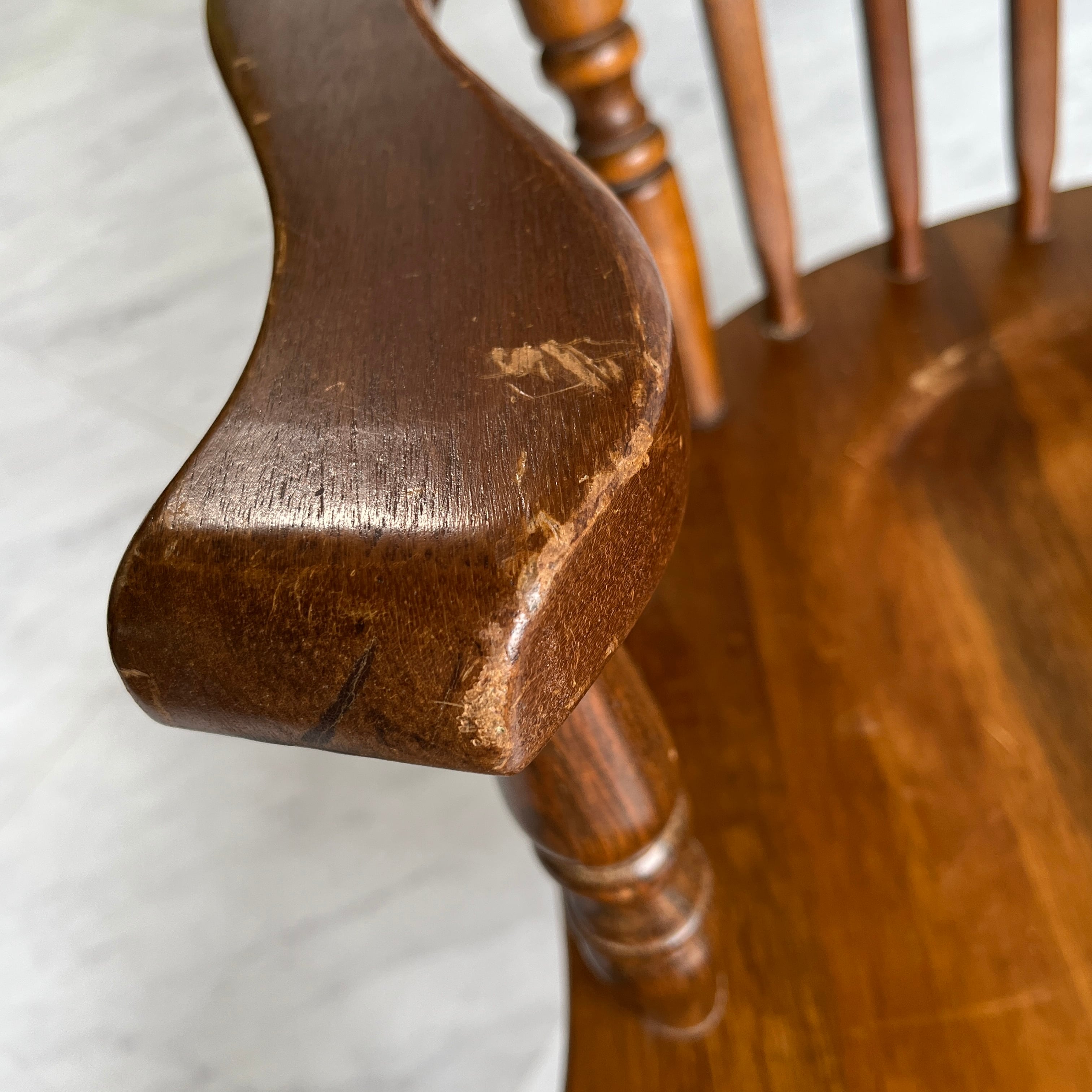 希少な秋田木工のロッキングチェアです。大きめのつくりで体全体を支えてくれるため、揺れても安心感があります。