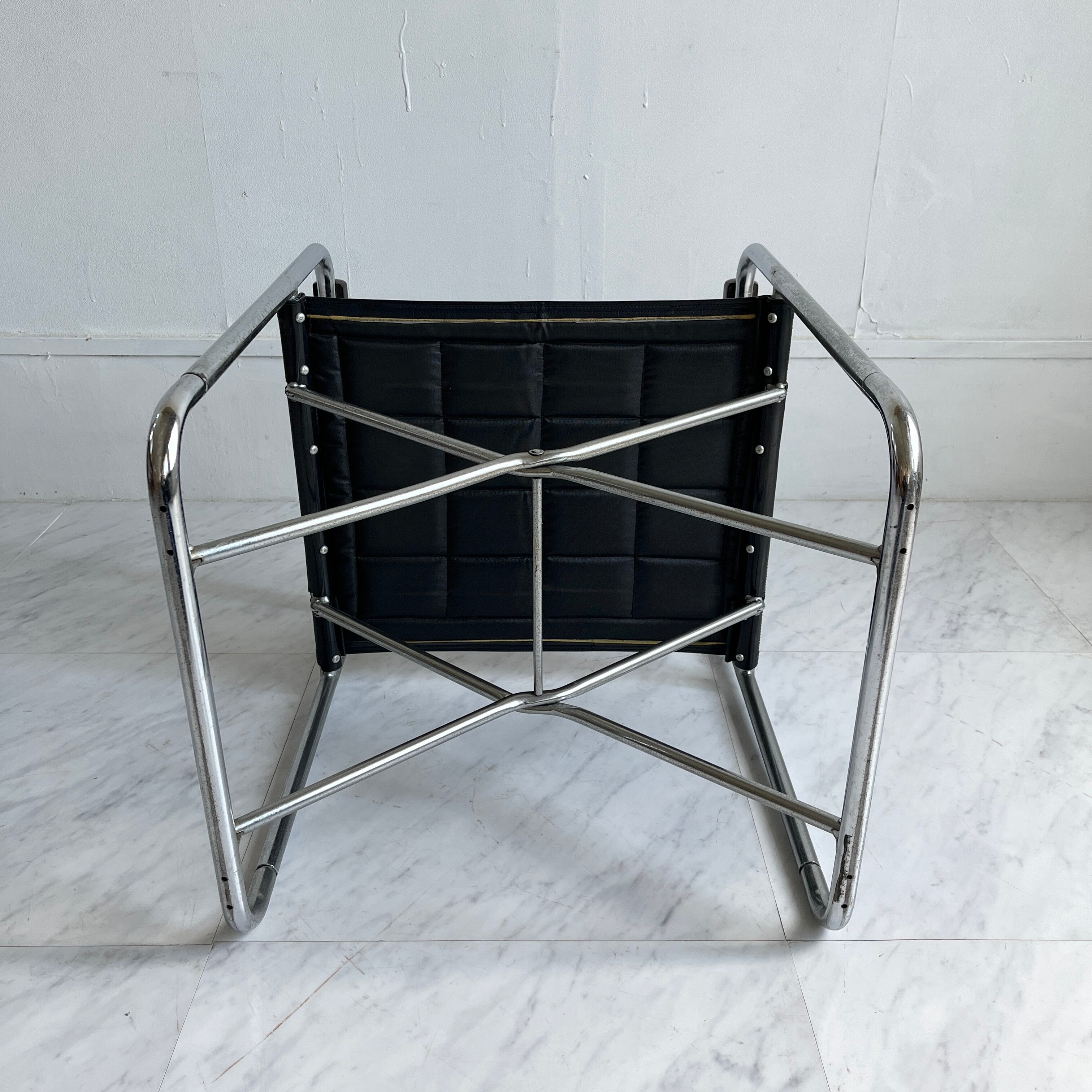 ヴィンテージの黒いビニルレザーのディレクターズチェアです。こちらにタグは付いていませんが、別のチェアには「UCHIDA SHARIYO Co. エックスチェア」とあります。